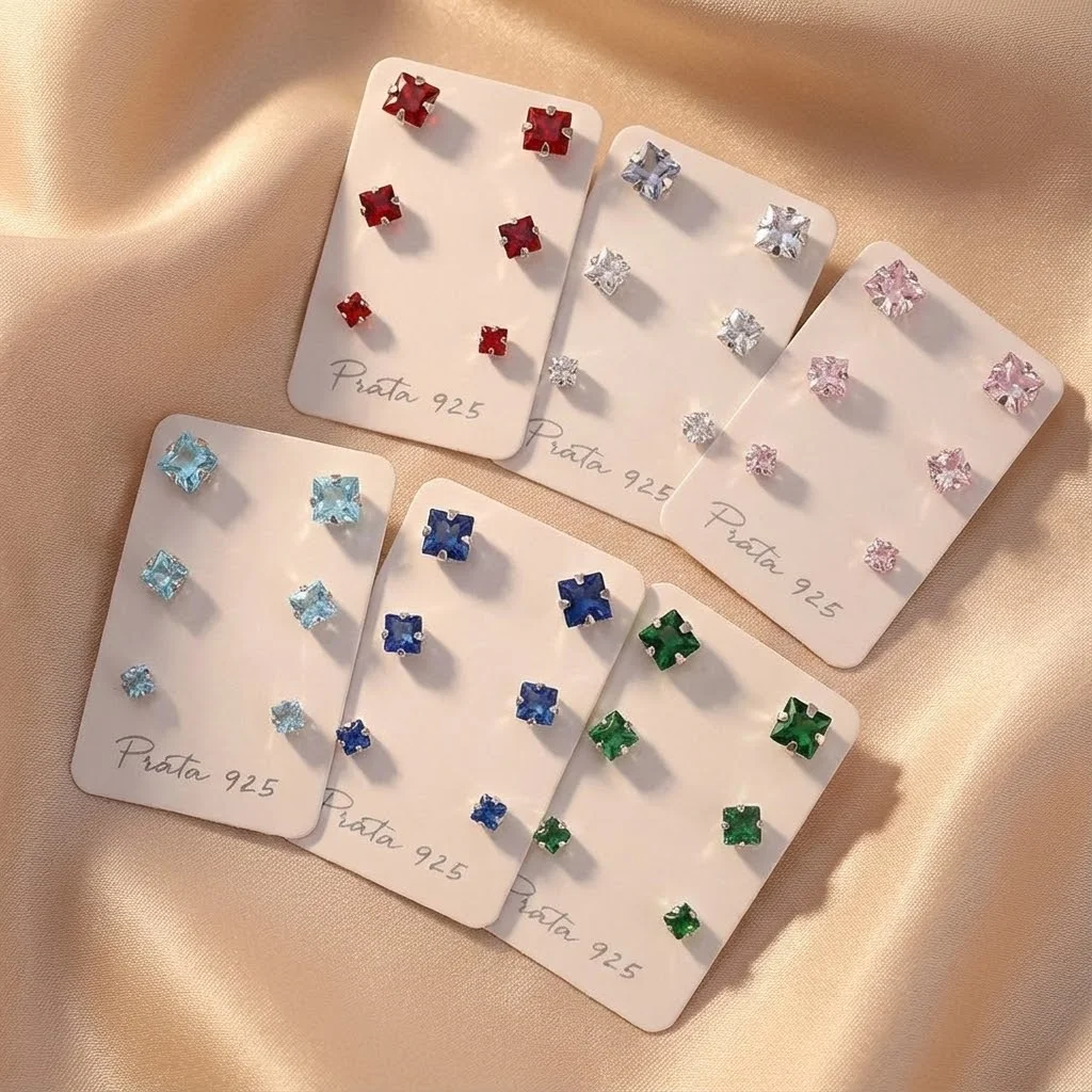 O Brinco Trio Colors Quadrado do Atacado de Pratas é a joia perfeita para quem ama ousar com delicadeza e valoriza o poder das combinações. Composto por três pares de brincos quadrados, todos em tons vibrantes e acabamento refinado, este trio oferece liberdade total para criar looks únicos e expressar sua personalidade com muito brilho.