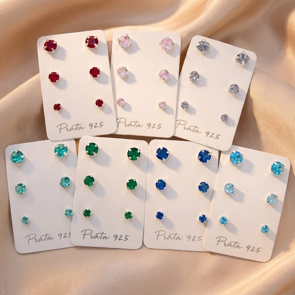 Confeccionados em Prata 925, os brincos garantem brilho intenso, durabilidade e conforto, mesmo para quem tem pele sensível. O toque de cor traz charme e personalidade, enquanto o design compacto torna o trio perfeito tanto para o dia a dia quanto para ocasiões especiais.
